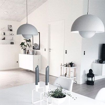 Another pendant light for your dining table that could be an optimal choice is the classic Flowerpot VP1 from &tradition, designed by Verner Panton. VP1 is the smallest of the flowerpot pendants with a diameter of 23cm, so we often see 2 hanging together above the dining table. If you have a smaller table, you can use the VP2, which has a diameter of 50cm.\ The entire Flowerpot series is very popular and available in many colors. You can find them all here