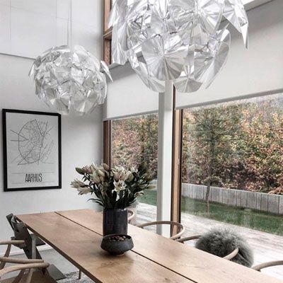 A beautiful dining table lamp that fits well with a long table is Hope. The Hope pendant from Luceplan is seen in many homes and is incredibly popular, especially due to its visual lightness and choice of materials. The light is multiplied and a pleasant, sparkling and calm atmosphere is recreated, sprinkled with thousands of lights that seem like diamonds. This has been the inspiration for the name: Hope.