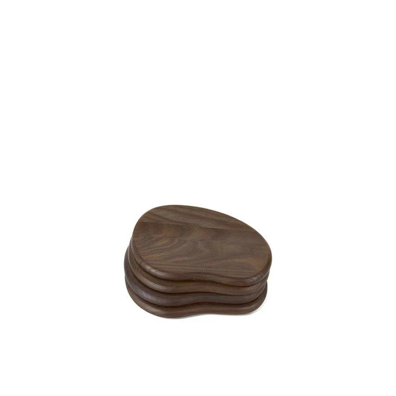 The Cairn Butter Boards Set of 4 Dark Brown presents itself in a sculptural and shape-orientated design that adds an artistic and appetising element to your meals. The soft arches and slightly asymmetrical shape are inspired by cairns, man-made stone piles that are often erected as memorials, and are crafted from solid, FSC-certified ash wood that guarantees a responsible and sustainable extraction process. During manufacturing, the wood is sanded to the soft, smooth shape that characterises the finished product and treated with a carbonised finish that gives the board an exclusive look.