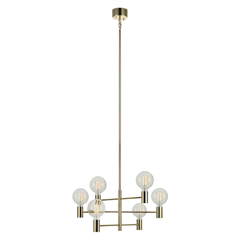 The Capital 6 Pendant Light Brass from Markslöjd is an elegant and timeless pendant light that will add a touch of luxury to your home. This beautiful lamp is made of iron and has an enchanting brass finish that fits perfectly into both modern and classic interiors. With its six arms placed at different levels, Capital creates a unique and dynamic lighting that catches the eye and creates a warm atmosphere in the room. The lamp is part of a popular series that is also available in polished chrome and matte black, so you can choose the colour that best complements your style. For optimal light, the lamp requires six light bulbs with a large socket (E27) of max 60W or equivalent in LED, which is not included. The height can be adjusted from 77 cm to 169 cm, making it easy to adapt the lamp to different rooms and needs. Give your home a stylish boost with this fantastic pendant light.