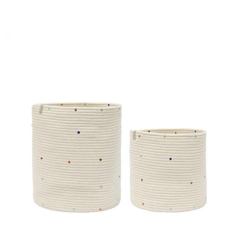 Confetti Storage Basket Set of 2 Mellow - OYOY Living Design is the perfect solution for bringing both style and functionality into your home. These storage baskets from OYOY Living Design are designed to organise the nursery with a playful and colourful design. Each basket is made of soft fabric for durable and secure storage of toys, clothes or other small items. With their beige and multicoloured confetti pattern, they add a cheerful touch to any room.