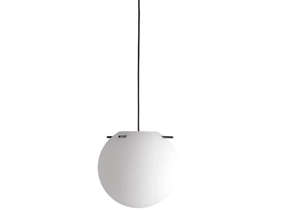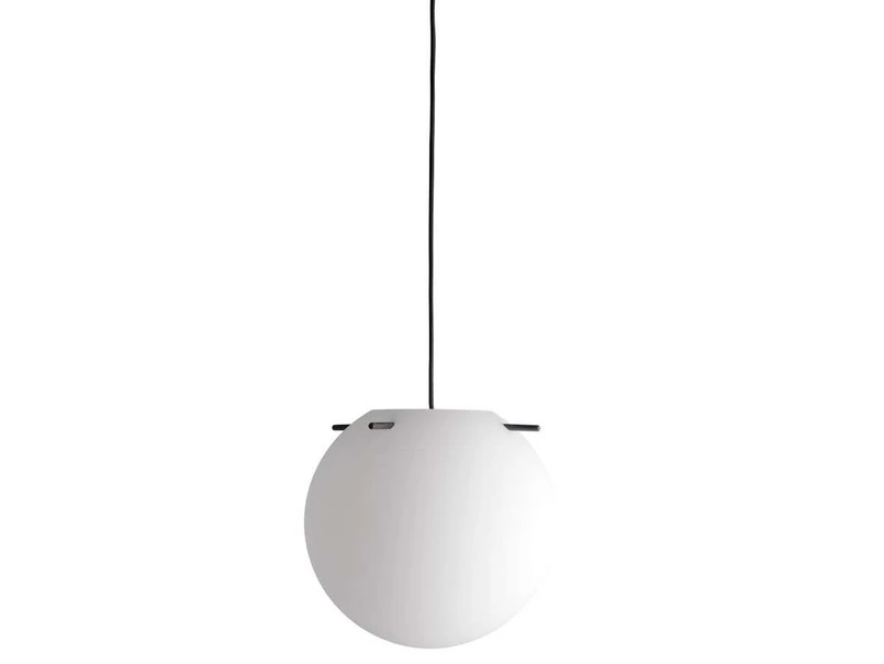 Koi Pendant Ø32 Opal White/Black combines Scandinavian minimalism with Japanese traditions in a beautiful holistic design that suits the bedroom, living room, hallway and children's room. Named after the Japanese word for gracefulness, the compact, round shape, detailed surface and beautiful brass elements make Koi Pendant the epitome of elegance and effortless lightness.