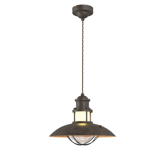 The Louisanne Brown pendant lamp breathes new life into old traditions with a beautiful and practical design. The lamp is composed of a shapely ceiling bracket from which a twisted textile cable runs, ending in a lamp head with a characteristic shape reminiscent of a lantern lantern. All components are finished in a matt brown colour to match the rustic and solid appearance.