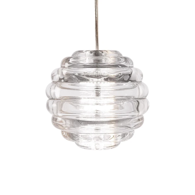The Press Pendant Mini Sphere 2700K Clear by Tom Dixon is an elegant and timeless pendant light that will add a touch of sophisticated lighting to any room. This pendant light is made of thick, industrially pressed glass that is designed and engineered to capture and refract light in a beautiful way. With its bright colour and robust material, this lamp is not only an aesthetic pleasure but also a durable investment that will last for many years. The Press Mini Sphere pendant light is part of a series of heavy, fluted lighting products, vases, bowls and candleholders, all made of thick, clear glass tubes. This pendant light is perfect for creating a cosy atmosphere in the living room, kitchen or dining room, where its clear glass and unique design will become a conversation piece.
